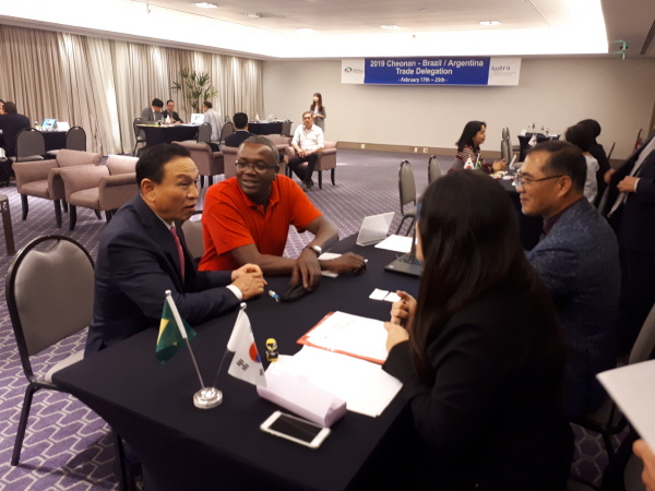 구본영 천안시장은 지난 19일(현지시각) 상파울루주 인터컨티넨탈 호텔에서 열린 브라질 수출 종합상담회장을 방문해 케이에스비 등 6개 업체 대표를 격려하고, 현지 수출 상담 진행 및 애로 사항 등을 청취했다.