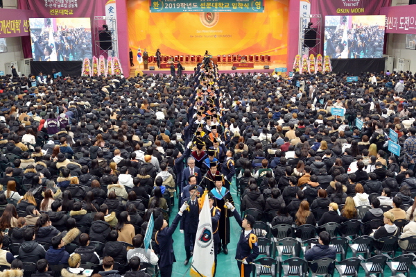 선문대학교(총장 황선조)는 2019학년도 입학식을 20일 체육관에서 개최했다.