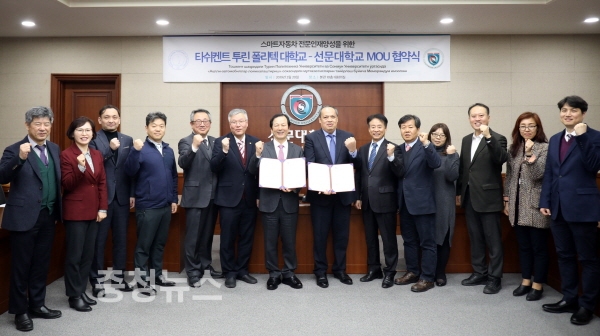 협약을 통해 투린폴리텍대학은 2019학년도 2학기부터 자동차 전공 학생 20~30명 정도를 선발해 1년 동안 선문대의 3D 설계 및 가상제조 시스템 분야 특화 교육을 받게 할 예정이다.