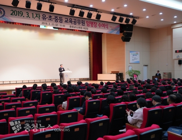 충남도교육청(교육감 김지철)은 22일 도교육청 대강당에서 2019년 3월 1일자 교(원)장, 교(원)감, 교육전문직원 발령자 154명에 대한 임명장 수여식을 가졌다.