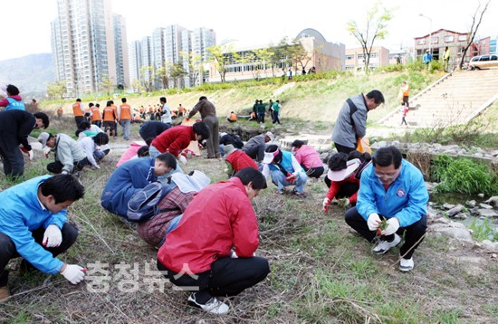 유성구 노은2동 주민센터(동장 우성호)는 살아숨쉬는 청정 생태하천 조성을 위한 일환으로 17일 반석천 일원에서 직능단체회원, 군수사령부 장병, 환화자원봉사단, 공무원 등 200여명이 참여한 가운데 잡초(환삼풀) 제거작업을 전개했다.