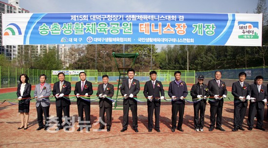 대전 대덕구(구청장 정용기)가 송촌생활체육공원 내 테니스장을 개장하고 대덕구청장기 테니스대회를 개최했다.