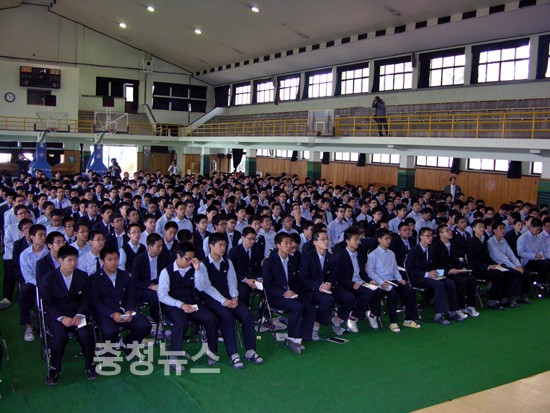 ▲ 대전고등학교학생들이 선배 이재환 이사장 특강을 청취하고 있다.
