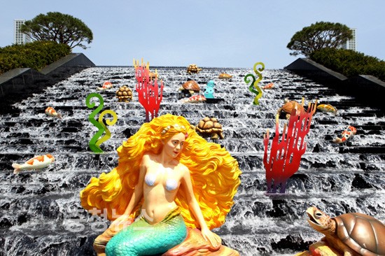 하지만 진짜 놀라움과 즐거움은 지금부터 시작이다. 연못 한가운데서 20미터 높이로 치솟는 분수의 하얀 물줄기는 음악소리에 맞춰 다채로운 모양으로 변한다. 초대형음악분수는 해가 넘어가면서 더욱 환상적인 분위기를 만드는데 오색의 야간경관조명이 비추게 되면 관람객은 절로 탄성을 지르게 된다. 분수의 물살을 이용한 워터스크린으로 영상을 감상하다보면 새로운 세계와 만나는 느낌에 빠져든다.
