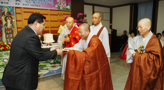 성금을 전달 받은 진동규 구청장은 “부처님 오신날을 맞아 정말 부처님의 따스한 자비를 느낄수 있다”고 답례를 표했다.