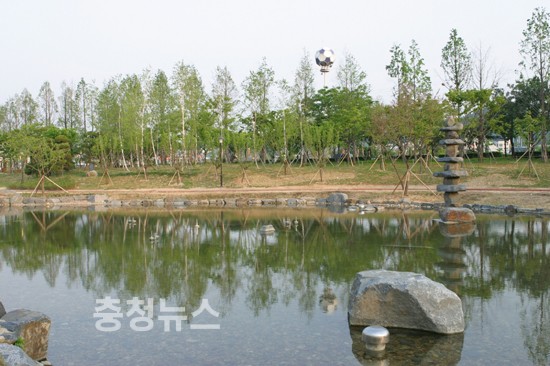 계룡건설 이인구 명예회장의 사재로 조성되는 유림공원이 공정 90%의 진도를 보이며 마무리 작업에 들어갔다.
