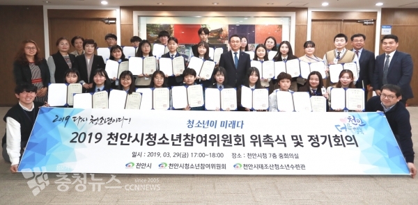 천안시와 천안시태조산청소년수련관(관장 윤여숭)은 29일 중회의실에서 천안시청소년참여위원회 위촉식을 열었다.