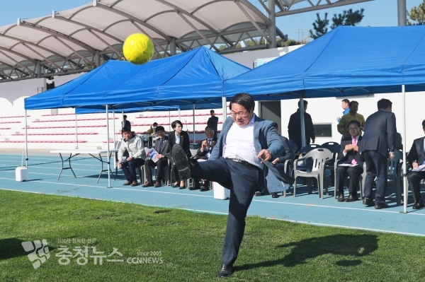 오세현 아산시장은 27일 이순신종합운동장 보조구장에서 충남축구협회와 아산시축구협회 주최로 열린 제1회 충무공 이순신배 전국동호인 축구대회 개회식에 참석해 축사를 전하고 시축을 했다.