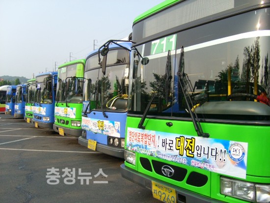 대전시내버스 900여대 차량정면 플래카드, 운수 종사자는 어깨띠를