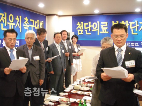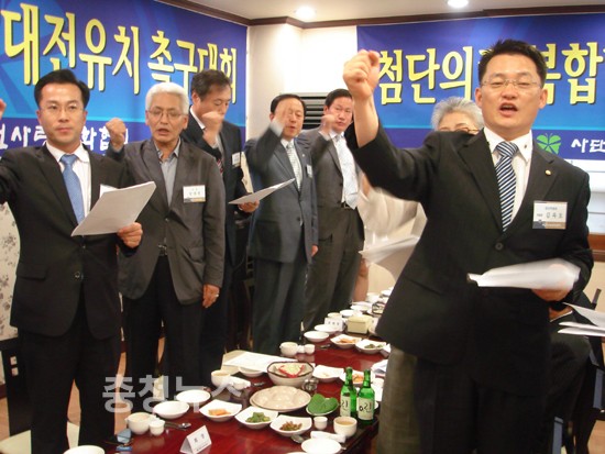 장 회장은 유성의 한 식당에서 가진 촉구대회에서"대전사랑문화협회가 주축으로 다함께 첨단의료복합단지 대전 유치에 심혈을 기우려 달라고 당부했다.