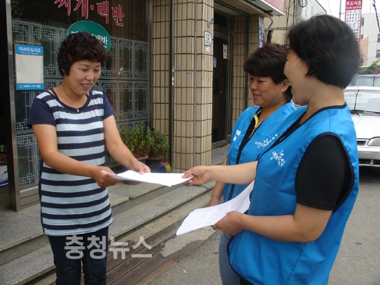 ▲ 대덕구 희망근로자들이 체납안내문 전달