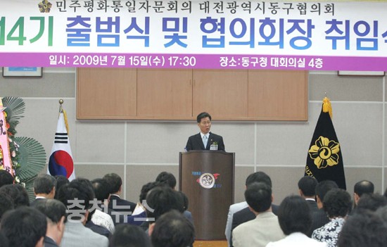 민주평화통일자문회의 대전동구협의회 14기 출범식 및 협의회장 취임식이 15일 동구청 대회의실에서 최청락 신임 동구협의회장, 임기평 전임 동구협의회장과 이장우 동구청장을 비롯한 자문위원, 초청인사 등 100여명이 참석한 가운데 개최됐다.