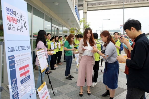 행정중심복합도시건설청은 21일 정부세종청사 앞 시외버스정류장에서 국토교통부와 함께 ‘안전에는 베테랑이 없습니다’라는 슬로건으로 건설안전 캠페인을 진행하였다. 이날 행복청 직원들과 정책기자단이 모여 시민들에게 국민적 관심을 환기시키며, 안전분야의 부패를 방지하고 안전관리 최우선 문화를 정착시키기 위해 ‘안전24시 행복24시, 행복도시 세종!’ 안전한 도시 만들기를 알렸다.