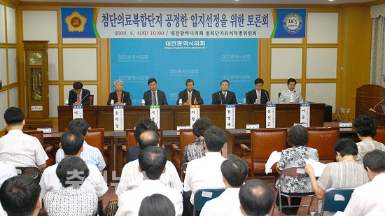 대전광시의회 첨단의료복합단지특별위원회 (위원장 전병배)는 4일(화) 오전 10시, 시의회 4층 대회의실에서 배제대학교 서경훈 생명공학과 교수 외 100여명이 참석한 가운데 ‘첨단의료복합단지 최적지 선정을 위한 토론회’를 개최했다.