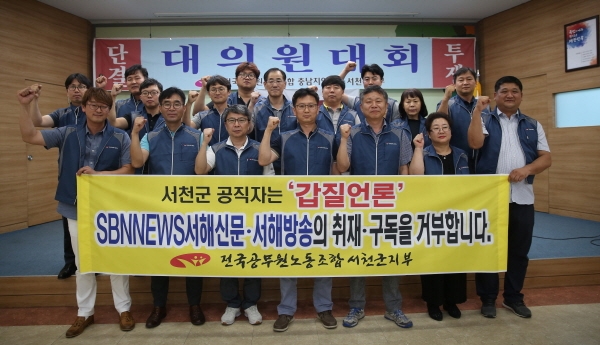 결국 노조는 ▲뉴시스와 SBNNEWS서해신문․서해방송의 인터뷰, 보도자료 요구 등 일체의 취재요청을 거부하며 서해신문의 구독을 정중히 거절한다. ▲ 공무집행을 방해한 B 논설위원에 대해서는 사법기관에 고발조치하겠다. ▲ 공무원이 언론취재를 방해했다는 등 허위사실을 유포해 서천군공무원을 모욕한 부분에 대해서도 그 책임을 묻겠습니다. ▲ 또한 뉴시스 기자의 이 같은 행태에 대해 뉴시스 본사의 입장을 듣겠다는 결의 내용을 밝혔다.