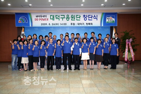 대전시 대덕구(구청장 정용기)는 26일 구청 중회의실에서 김연풍 부구청장과 이학용 대덕구공무원노조위원장 등 80여명이 참석한 가운데 ‘대덕구응원단’ 창단식을 열었다.