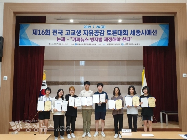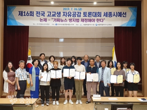 이번 대회에는 '가짜뉴스 방지법 제정해야 한다' 라는 논제로, 찬·반 의견으로 나눠, 세종시 각 고등학교에서 선발된 5개팀이 열띤 토론을 벌였다.