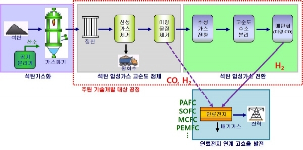 IGFC 기술의 핵심은 황(S)이나 중금속, 미세 분진 등이 포함된 석탄가스를 연료전지의 연료로 사용 가능한 고순도의 수소로 전환시키는 것이다. 이에는 황화합물, 미량의 불순물, 분진 등을 제거하는 기술과 일산화탄소를 수소로 전환시키는 기술(합성가스 전환), 그리고 이산화탄소를 분리·제거하기 위한 흡착기술 등이 포함된다.
