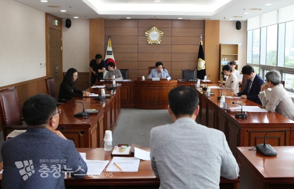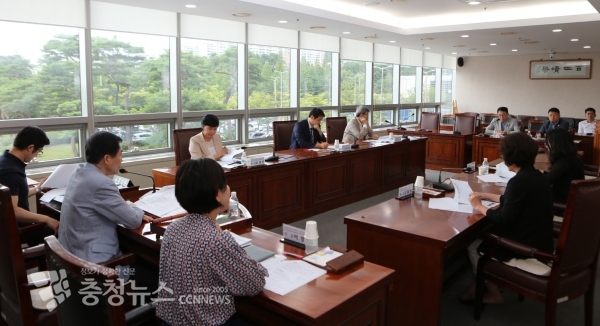 천안시의회(의장 인치견) 는 31일 의회운영위원회 회의실에서 ‘2019 경제산업 ·건설교통위원회 의원 공무국외 출장 심사위원회’를 개최했다.