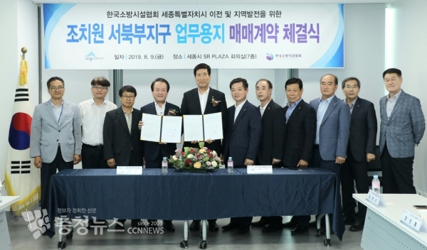 세종특별자치시(시장 이춘희)는 9일 세종 SB플라자에서 이강진 정무부시장과 김태균 한국소방시설협회장이 참석한 가운데 ‘소방시설협회 세종시 이전을 위한 업무용지 매매계약’을 체결했다.