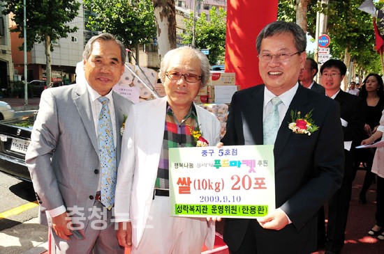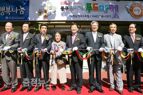 대전시 중구(구청장 이은권)가 10일 대사동 영진아파트 옆에 저소득층이 직접 편의점 형태의 매장을 방문해 자기에게 필요한 식품을 선택할 수 있는 ‘행복나눔 무지개 푸드마켓 중구점’을 개소했다.