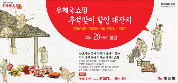 우체국쇼핑이 추석을 맞아 가격을 최대 20% 내린다. 지식경제부 충청체신청(청장 신순식)은 민족 최대 명절인 추석을 맞아 14일부터 27일까지 14일간 ‘우체국쇼핑 추석맞이 할인대잔치’를 실시한다고 10일 밝혔다.