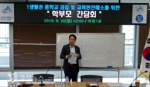 세종특별자치시의회(의장 서금택) 교육안전위원회의 상병헌 위원장이 26일(월) 아름동 복합커뮤니티센터 회의실에서 1생활권 학부모와의 간담회를 개최했다.