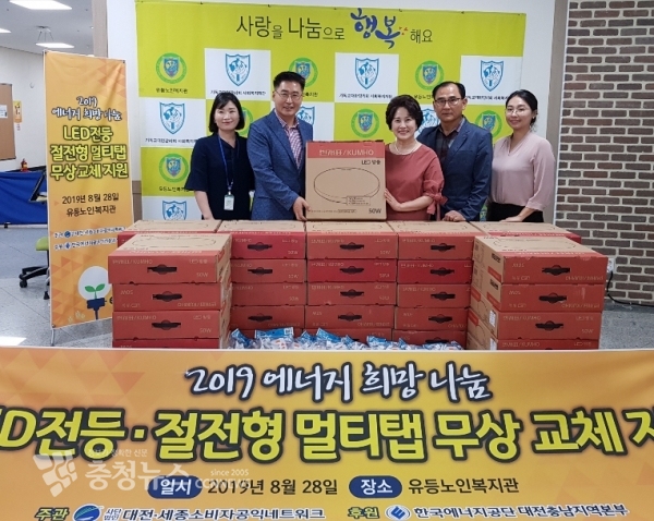 LED 전등 무상 교체 사업은 한국에너지공단 대전충남지역본부(본부장 최창기) 후원으로 사각지대에 있는 저소득층, 독거노인 등 에너지 취약계층 50여 가구 대상으로 엘이디 전등, 절전형 멀티콘센트를 무상으로 교체해주는 사업이다.