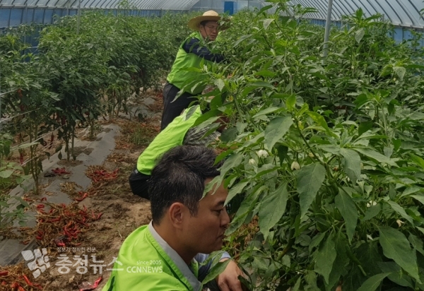 농가의 고추따기 봉사활동 / 충청뉴스 최형순 기자