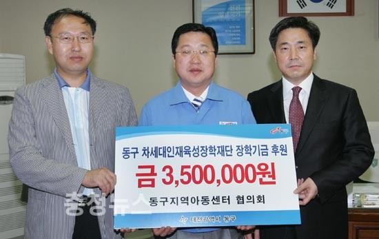대전 동구지역아동센터협의회(회장 심성만)는 30일 동구 차세대인재육성장학재단(이사장 이장우)에 350만원의 장학금을 기탁했다.