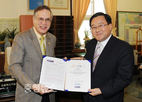 충남도는 14일 세계축제협회 (IFEA World) 스티븐 우드 슈메이더 회장이 이완구 충남도지사를 방문해 3개 부문의 상패와 상장을 전달했다고 밝혔다.