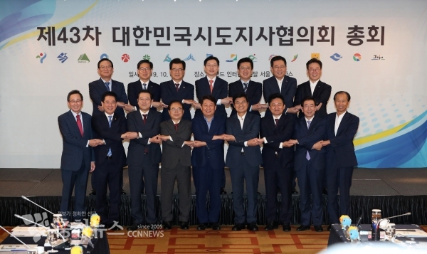 4일 서울 강남구 삼성동 그랜드 인터컨티넨탈 서울 파르나스에서 열린 제43차 대한민국시도지사협의회 총회에서 참석한 시도지사들이 총회 개회에 앞서 기념사진을 촬영하고 있다. 저작권자 © 충청뉴스 무단전재 및 재배포 금지 김윤아 기자 다른기사 보기 기사가 마음에 드셨나요? 충청뉴스 좋은 기사 후원하기 1,000원 3,000원 5,000원 10,000원 30,000원 50,000원 직접입력 비회원 약관동의하기 ※ 소중한 후원금은 더 좋은 기사를 만드는데 쓰겠습니다.