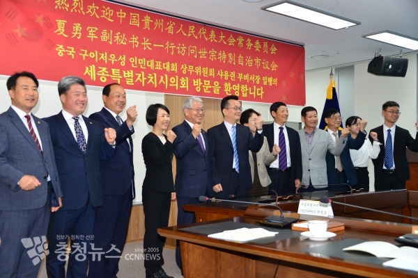 중국 구이저우성 인민대표대회 상무위원회 샤용쥔 부비서장을 비롯한 대표단 6명이 4일 세종시의회를 방문 양도시간 우호 협력을 다졌다.