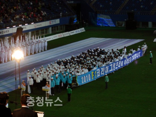 ▲<본지단독 사진 촬영> 정운찬 국무총리,유인촌 문화체육관광부장관,박성효 시장이 경기장을 입장을 하고 있다.