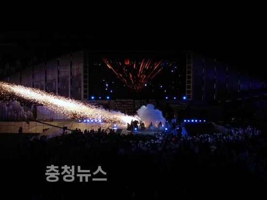 또 공식 행사인 축제마당에서는 차기개최지인 경상남도 선수단 입장을 시작으로 각 시도 대표선수단 및 해외동포선수단 입장 후  7일간의 열전을 알리는 성화가 점화됐다.