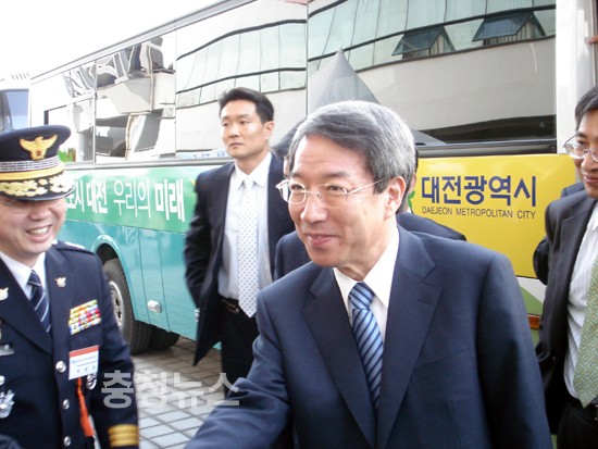▲ 박종준 충남경찰청장이 정총리를 영접하고 있다.