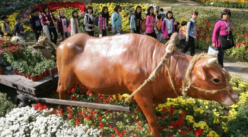 2009 대청호 국화향나라전이 열리고 있는 동구(구청장 이장우) 추동 대청호자연생태관에 등장한 소 달구지가 관람객들의 시선을 끄는 인기 조형물 중 하나로 떠올랐다.