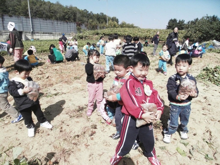 대전 대덕구(구청장 정용기) 덕암동주민센터는 22일 덕암동 258-3번지 일원 공한지(1600㎡)에서 대덕종합사회복지관 어린이집 원생 40명과 덕암동 새마을지도자 30명 등이 참여한 가운데 고구마캐기 체험행사를 가졌다.