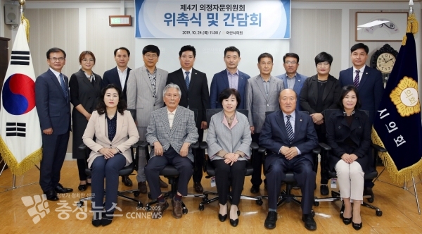 이날 위촉식에는 아산시의회 의장단이 참석한 가운데 민간 자문위원으로 총 10명을 위촉하였으며, 위촉장 수여에 이어 자체회의에서 위원장(전, 아산시의회 의장 남용길) 및 부위원장(충청투데이 이사 정재호)을 선출하고 향후 제4기 의정자문위원회 운영방안 등을 협의했다.