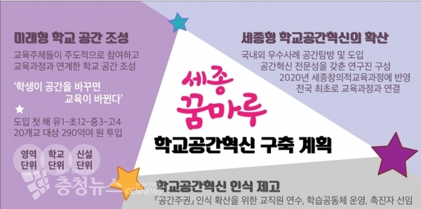 이번 사업은 읍·면·동의 행정구역을 가지고 노후 학교와 신설 예정 학교 등이 공존하는 세종시의 특수한 교육환경 고려해 △영역, △학교, △신설학교 등 3개의 단위로 구분되어 추진된다.