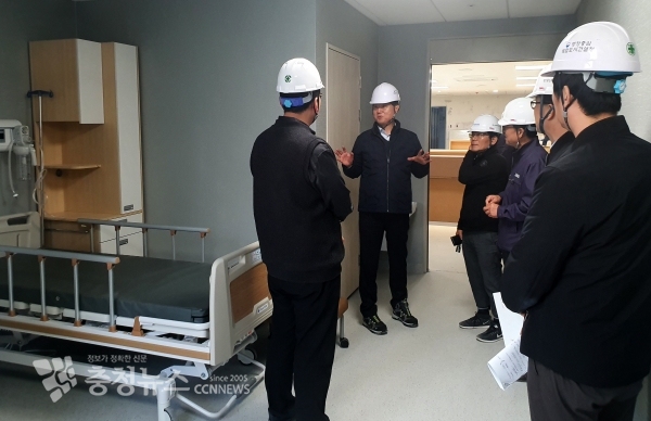박무익 행복청 차장(사진 가운데)은 2020년 3월 준공을 목표로 막바지 공사가 진행중인 ‘세종충남대학교병원 건립공사 현장’에 대한 점검을 지난 6일 실시했다. 세종충남대학교 병원은 최첨단 의료시스템 갖춘 500병상 규모로 2020년 6월에 개원할 계획이다.