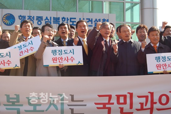 양승조 국회의원은 행복도시 추진당시 17대 국회에서의 여야 합의 과정을 설명하고, 국회 합의 과정과 국민적 동의과정을 거쳐 시작한 사업을 일방적으로 수정하려는 시도에 대해 강력히 규탄했다.