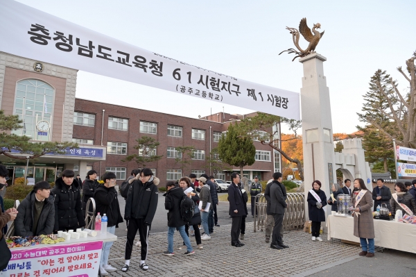 김정섭 공주시장이 14일 오전 공주고와 공주여고, 사대부고, 금성여고 등 관내 4곳 시험장을 돌며 수험생들에게 격려와 응원의 메시지를 전달했다.