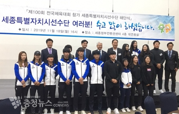 세종특별자치시체육회(회장 이춘희)는 18일 정부세종컨벤션센터 대연회실에서 ‘세종특별자치시선수단 해단식’을 개최했다.