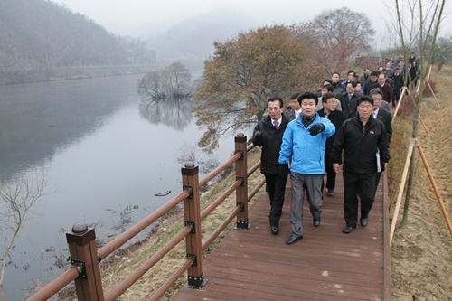 대전 대덕구(구청장 정용기)는 지난 4일 신탄진 ‘로하스happy로드’에서 정용기 구청장과 부구청장, 본부장, 각 팀장 등 20여명의 구간부들이 수변(水邊)산책로 1.5km를 걸으며 12월 첫번째 주례팀장회의를 가졌다.