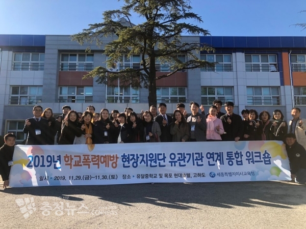 세종특별자치시교육청(교육감 최교진)은 지난달 29 ~ 30일까지 이틀간 전라남도 목포시 일원에서 학교폭력예방을 위한 현장지원단, 어울림컨설팅지원단, 학교전담경찰관, 현장자문지원팀, 교육청 관계자 등 40명을 대상으로 ‘학교폭력 예방 현장지원 역량강화 워크숍’을 실시했다.