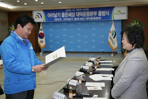 대전 대덕구(구청장 정용기)는 17일 구청 중회의실에서 종교계와 교육계 관계자 20여명이 참석한 가운데 아이낳기 좋은세상 대덕운동본부를 구성해 출범식을 가졌다.