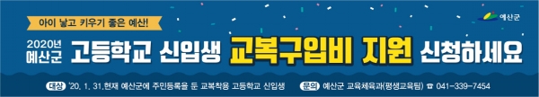 예산군, ‘2020년도 고등학교 신입생 대상’ 교복구입비 지원