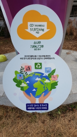 올해 4 월부터 11 월까지 8 개월간 작년 대비 CO2 를 51,972.4kg 을 절감하였으며 , 이는 소나무 7,896.7 그루를 심은 효과이다 .