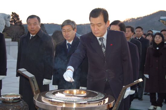 대전시당 당직자와 당원 등 100여 명이 1일 대전국립현충원을 참배하였다. ▲ 민주당 대전시당 선병렬위원장과 당직자 당원 등 100여 명 현충원 참배 선병렬 위원장 등 민주당 대전시당 당직자와 당원 100여 명은 경인년 첫날인 1일 오전 7시 50분 대전국립현충원을 참배하고 전국민이 골고루 잘사는 국토균형발전이 실현되는 2010년을 기원하고 6.2 지방선거 승리를 다짐했다. 저작권자 © 충청뉴스 무단전재 및 재배포 금지 김거수 기자 다른기사 보기 기사가 마음에 드셨나요? 충청뉴스 좋은 기사 후원하기 1,000원 3,000원 5,000원 10,000원 30,000원 50,000원 직접입력 비회원 약관동의하기 ※ 소중한 후원금은 더 좋은 기사를 만드는데 쓰겠습니다.